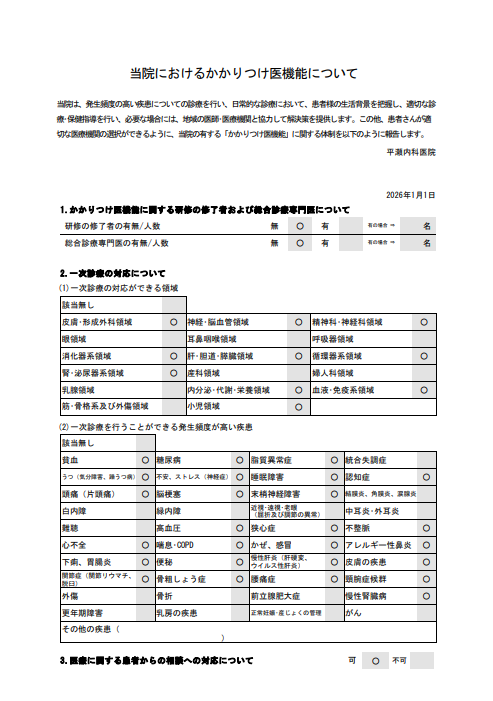 当院は地域における『かかりつけ医』として以下の取り組みを行っております。